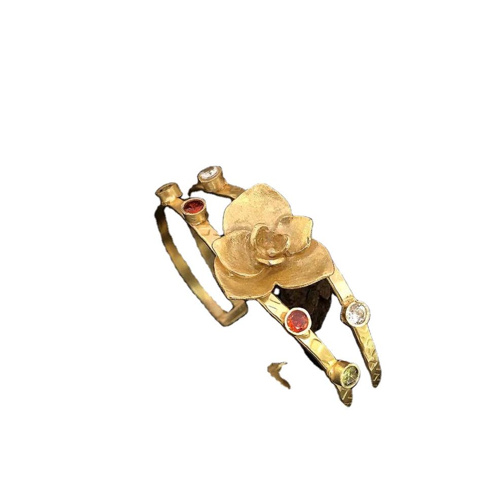 Bracelet plaqué or fait à la main en forme de fleur de pierres précieuses multicolores SKU6953