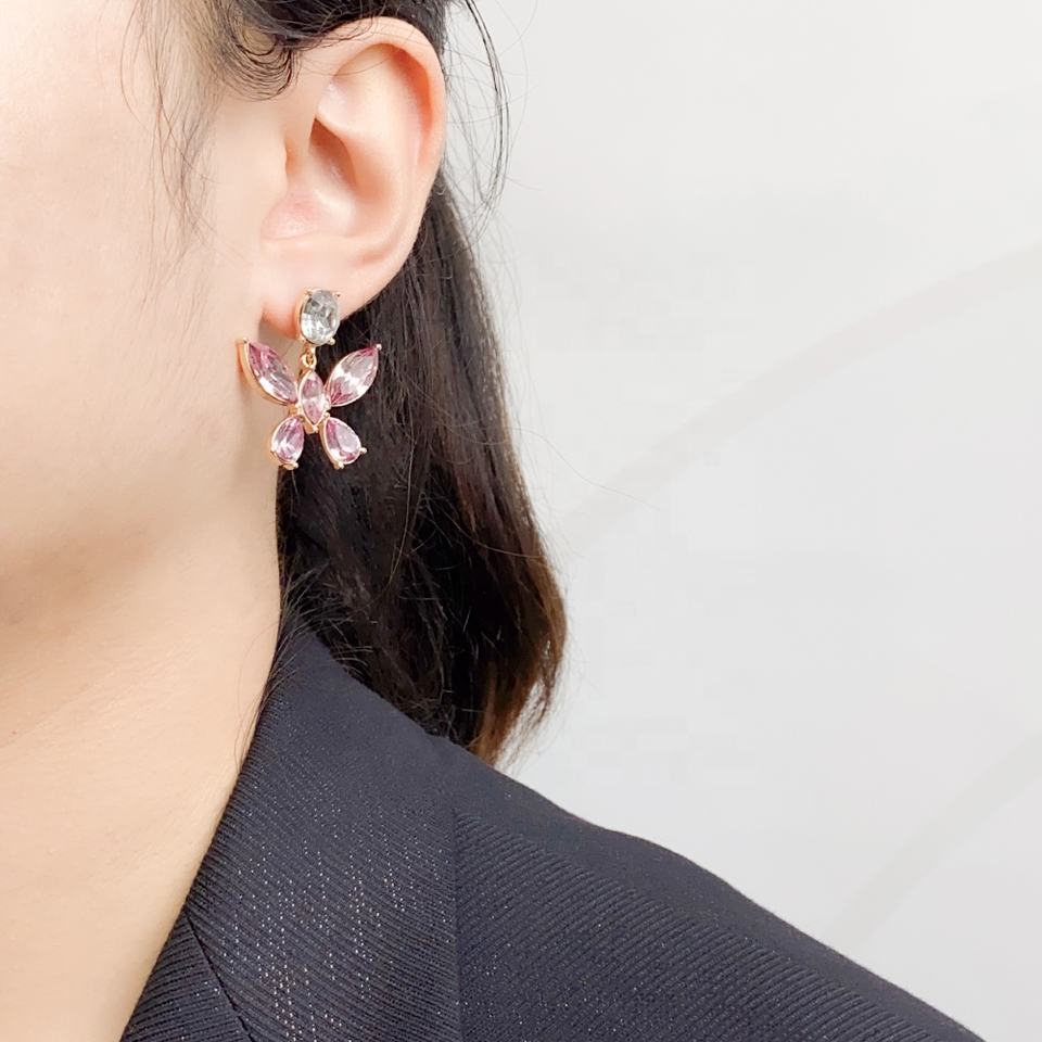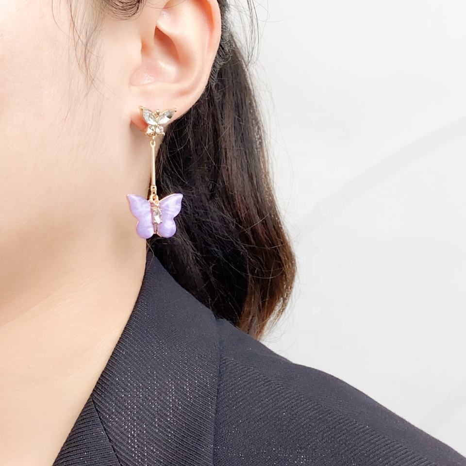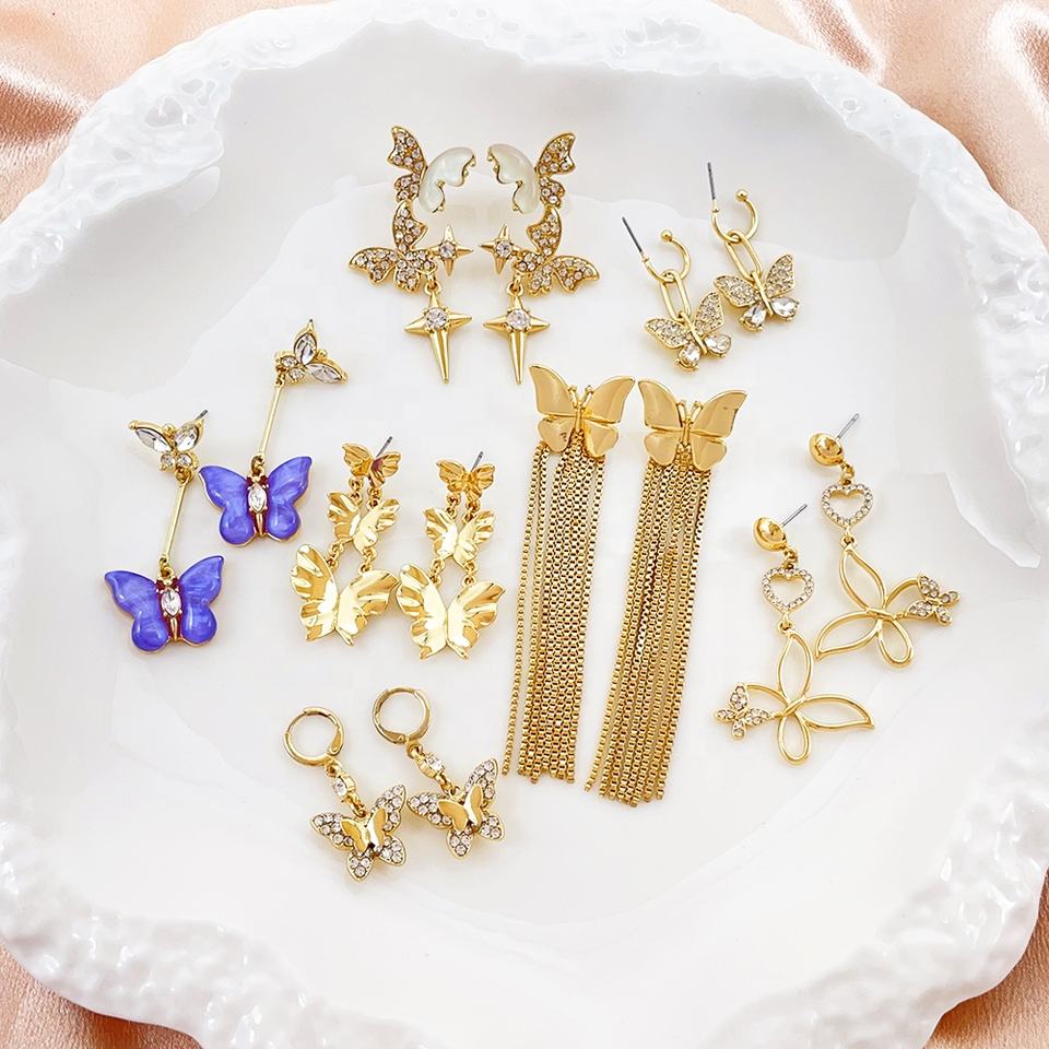 Boucles d'oreilles longues à pampilles de luxe personnalisées avec breloques cœur et papillon en émail plaqué or et ensemble de boucles d'oreilles