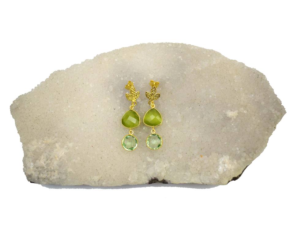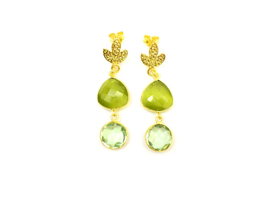 Jewelry Name:Gold Plated Green Amethyst & Monolisa Gemstone Stud Earring