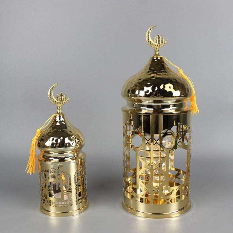 Gold Plated Hurricane Luxury Tealight Candle Holder Hanging And Tabletop Decorative Lanterns For Ramadan Wedding Accessories