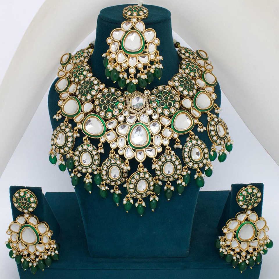 Gold Plated Kundan and Beads Necklace Set 10581332GR Fashion Jewelry Accessory