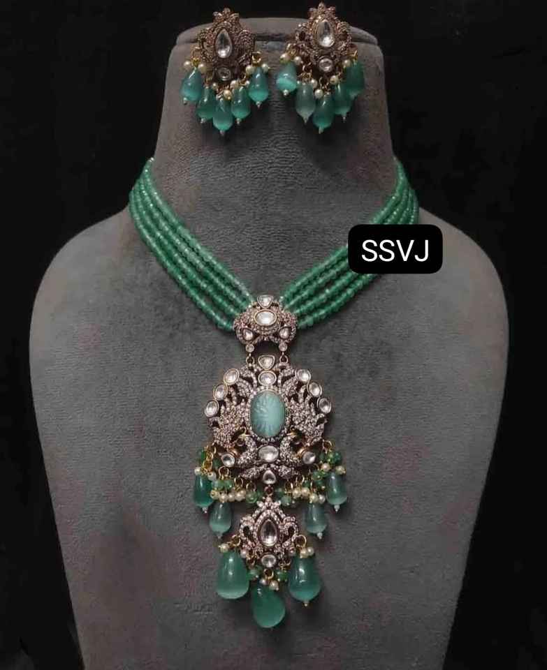 Gold Plated Luxury Designer Polki Necklace Set with Earrings Bridal Jewelry for Wedding & Party Celebration