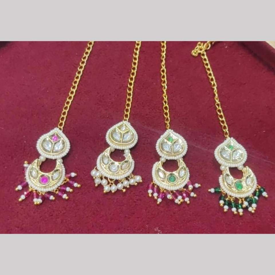Gold Plated Maangtikka with Crystal Stone and Pearls Elegant Pearl Earrings