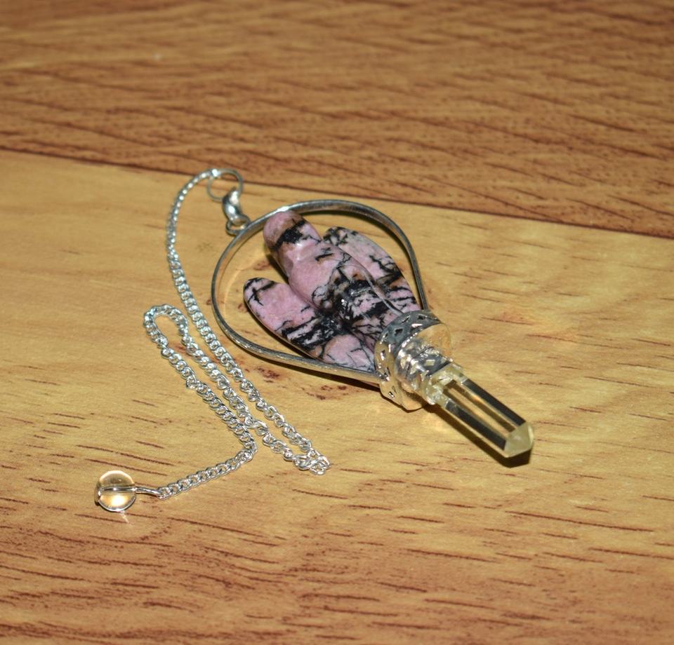 Plaqué or Métal Pendule avec Scolecite Crayon I 5 Bague Isis Ouvrable Pendule JE Pendule En Métal