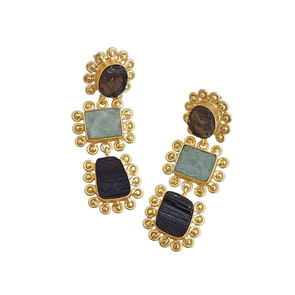 Boucles d'oreilles pendantes plaquées or multi-pierres pour femme, bijoux de mode semi-précieux contemporains, vente en gros pour boutiques de mariage
