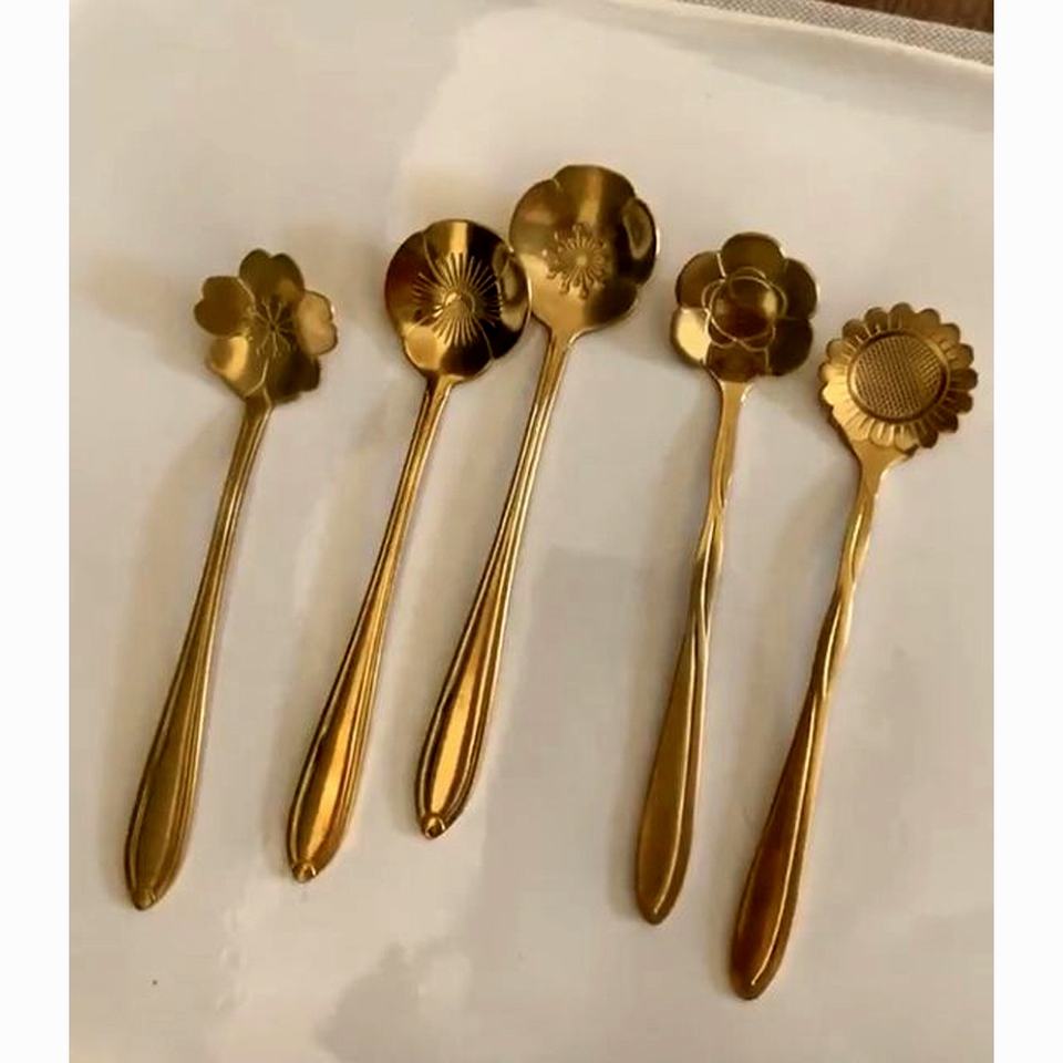 Ensemble de service de salade en acier inoxydable plaqué or, nouveau Look, poignée avec de nombreux modèles de fleurs