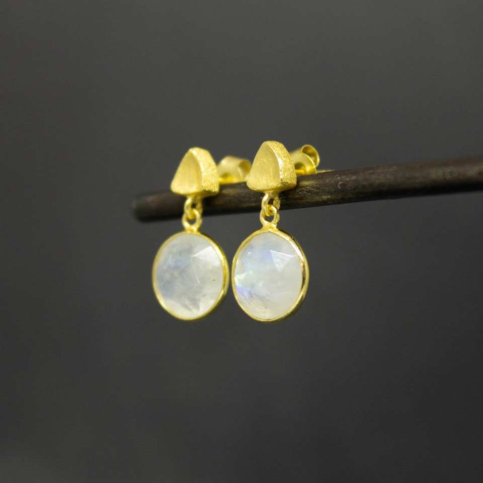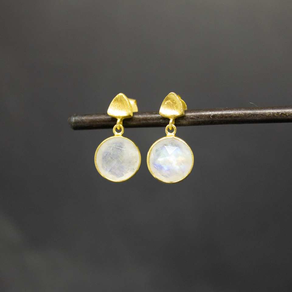 Boucles d'oreilles pendantes en forme de pierre de lune arc-en-ciel plaquées or, argent sterling 925, tendance, à porter tous les jours, bijoux pour femmes, pour les occasions de fête, cadeaux