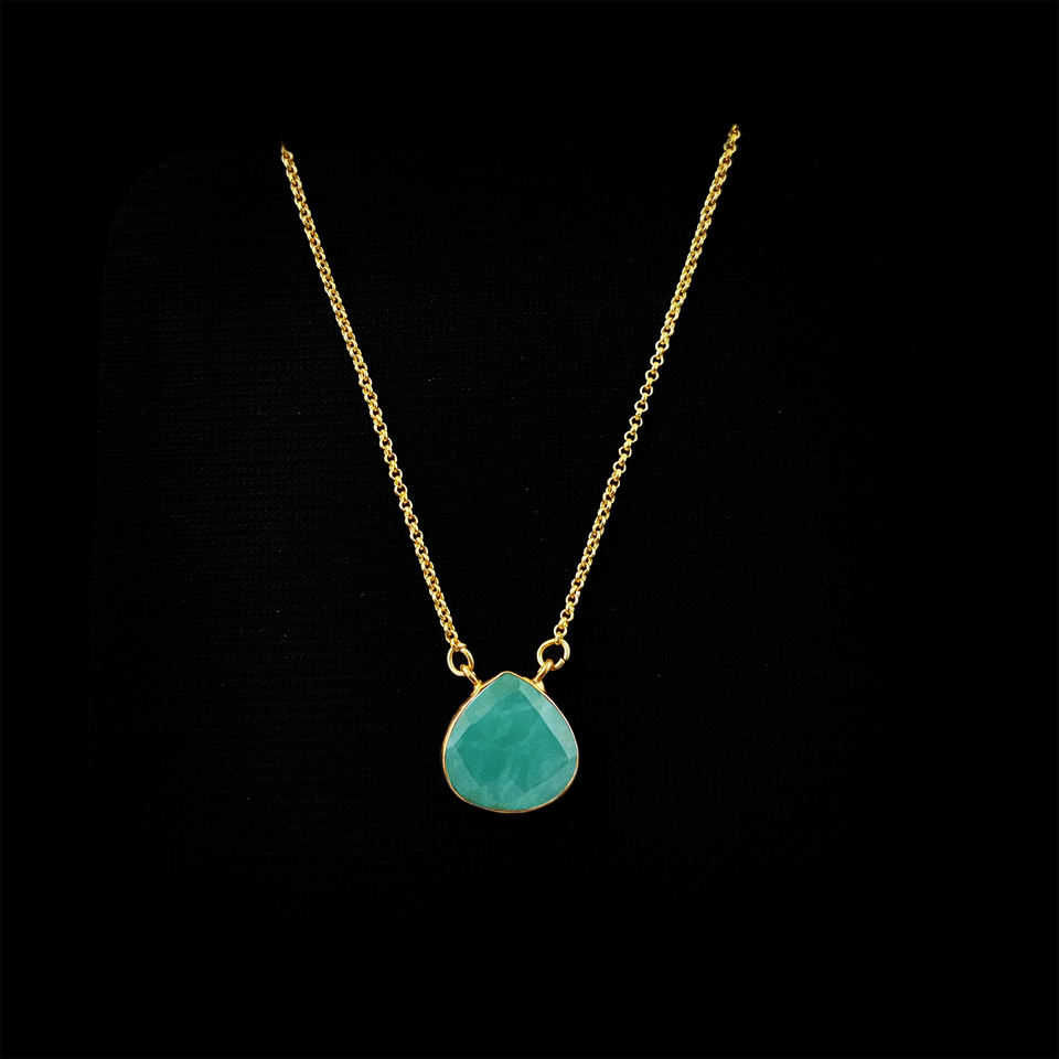 Collier en Amazonite plaqué or/argent, pendentif à facettes en forme de cœur avec Double voile, pierre précieuse