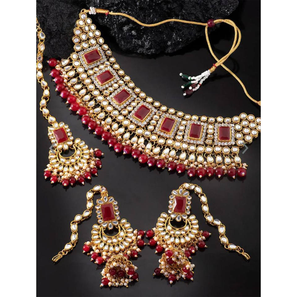 Product Name:Bridal Choker Necklace Jewellery Set With Earrings & Maang Tikka