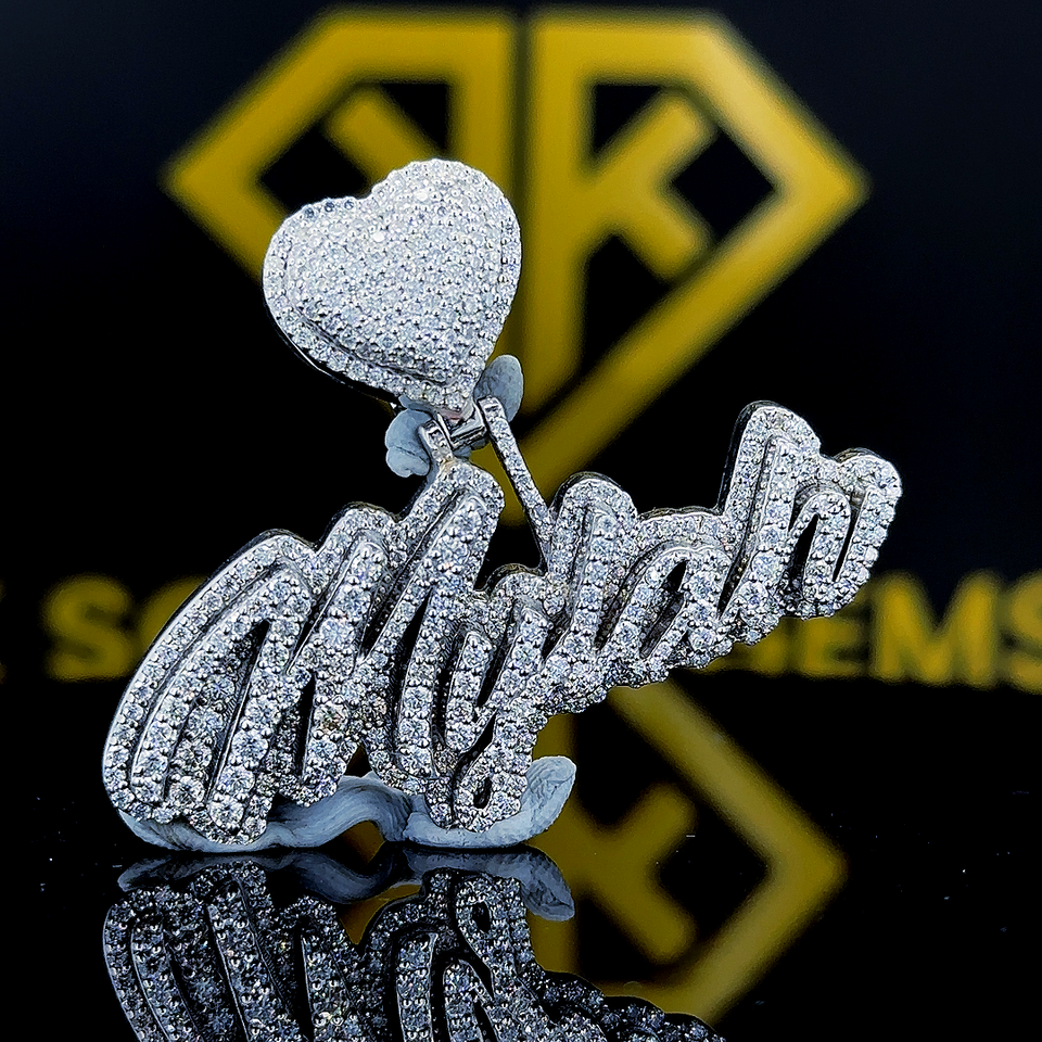 Gold Plated VVS Moissanite and Diamond Pendant White Blue Sapphire Hip Hop Jewelry Tester Pass for Children