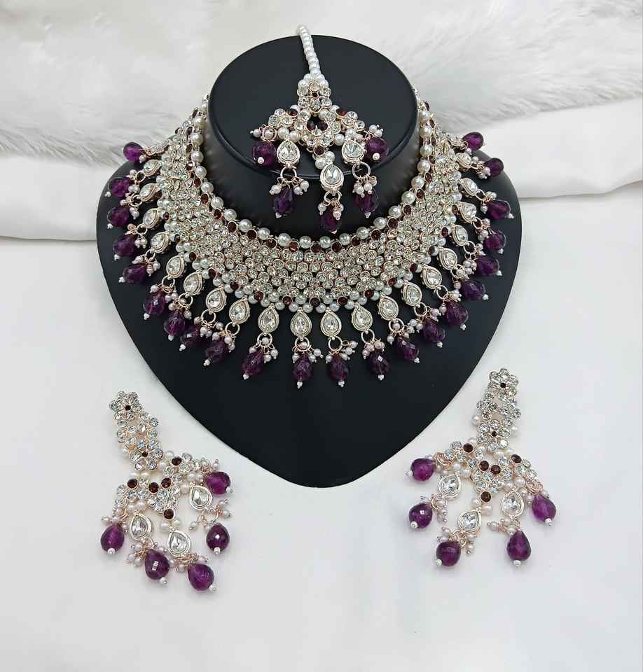 Products Name:Fancy Collection Gold Plated Kundan & Pearl Necklace Set