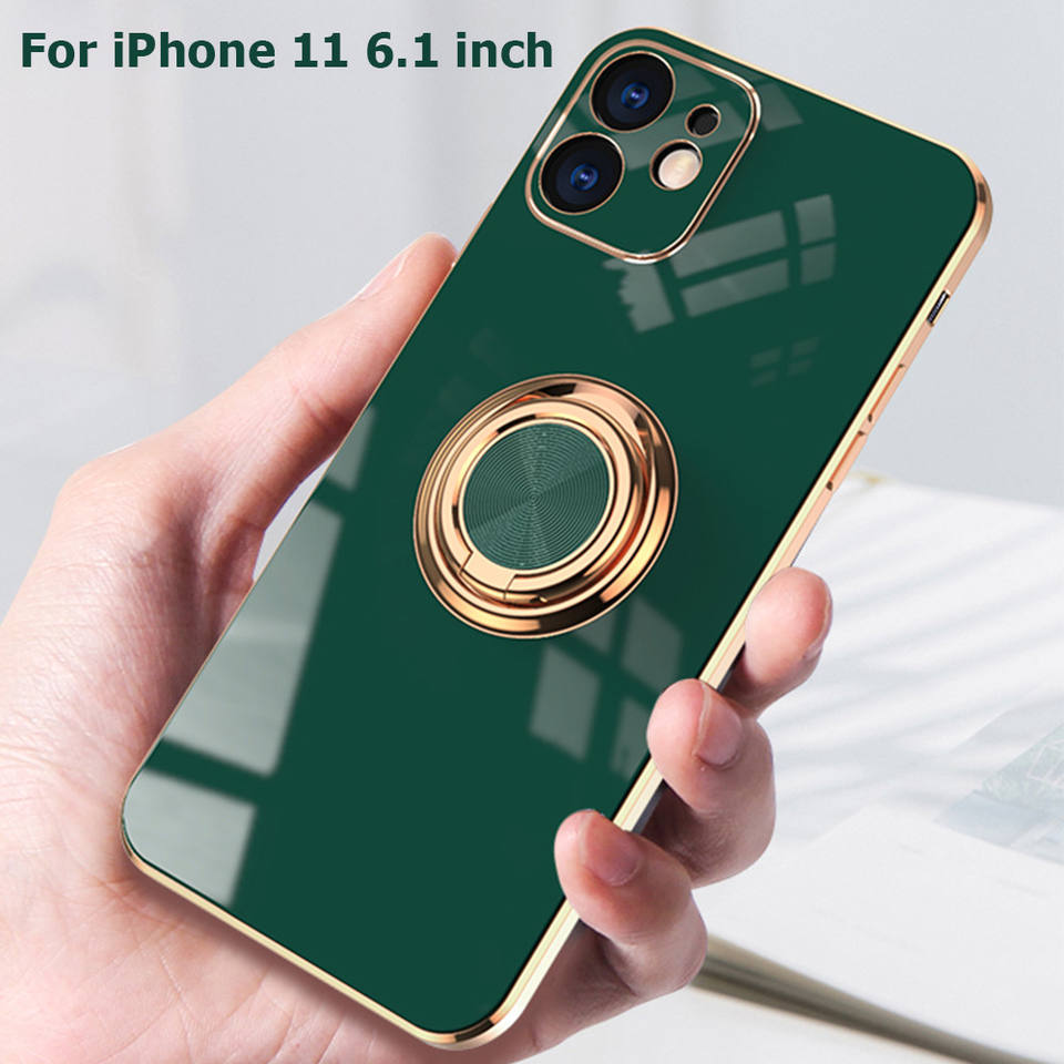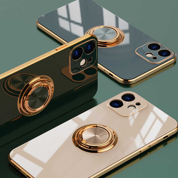 Coque de téléphone avec anneau magnétique, couleur or, étui en tpu pour iPhone 13 12 11 Pro Max, Protection de lentille, housse arrière en silicone