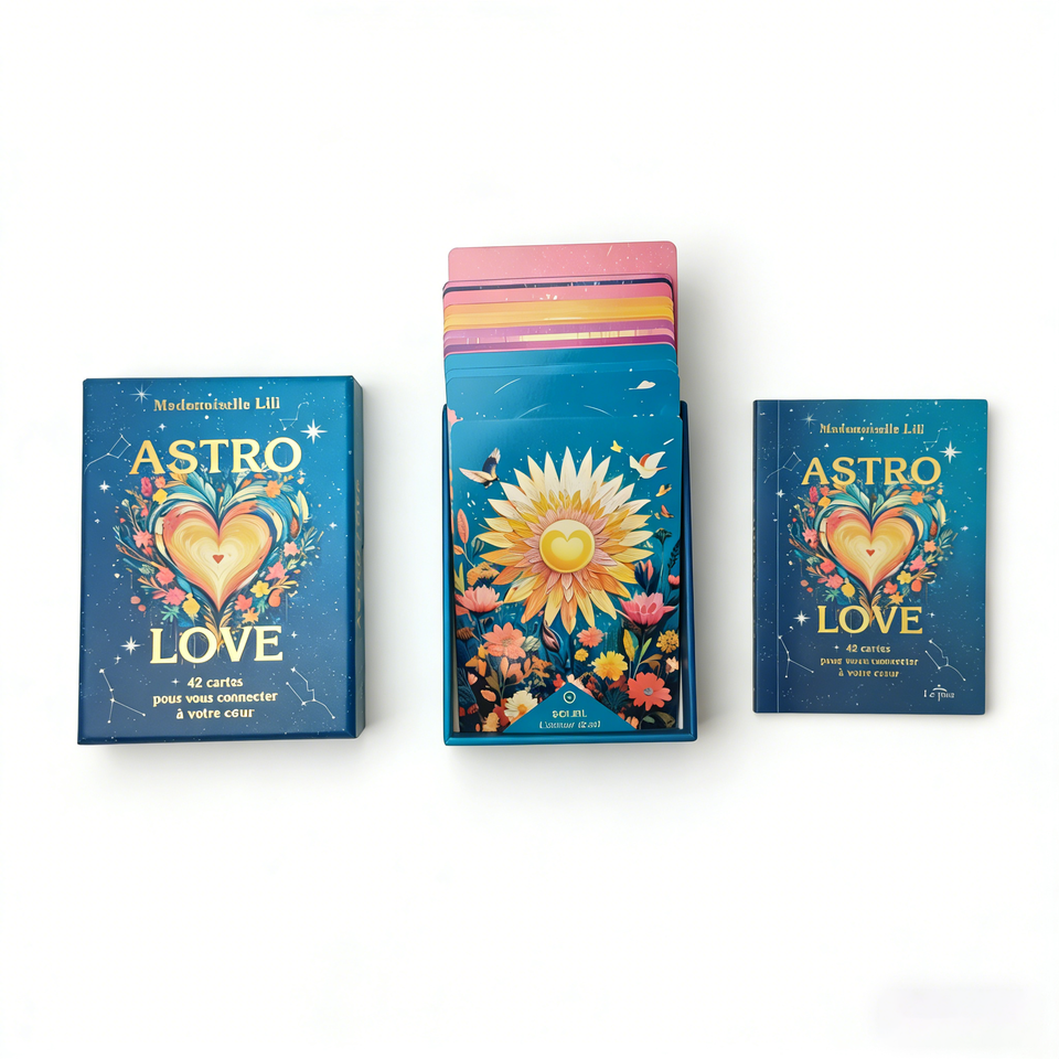 Cartes à jouer dorées, jeux de cartes de tarot, impression personnalisée de cartes de tarot, cartes de tarot dorées avec le thème de l'amour