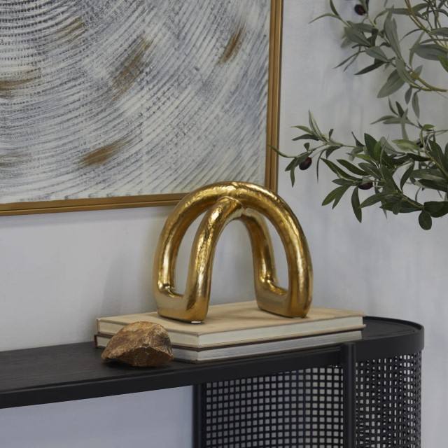 Sculpture de chaîne en porcelaine dorée Sculpture décorative de table en accent d'art moderne Sculpture dorée pour la décoration intérieure Sculpture polie moderne