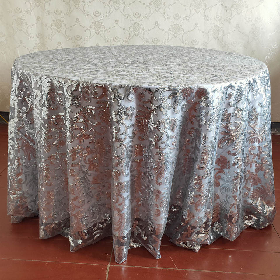 Nappe de TABLE en maille brodée à paillettes, 4 pièces, rondes, brodées, à fleurs, personnalisé, pour fête d'hôtel, BANQUET, mariage