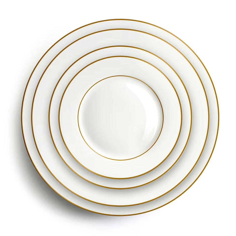 Nom du produit:Assiettes en porcelaine de Chine à bordure dorée