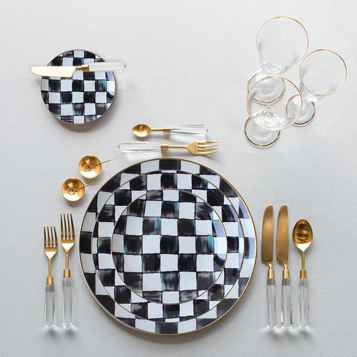 Assiettes en céramique à carreaux 12 pièces, cadeaux pour elle, grecque, de mariage, en vrac
