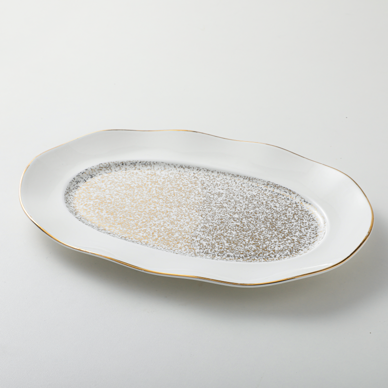 Ensemble de plats de service à dessert ovales irréguliers en céramique à bord doré, vaisselle de luxe en porcelaine du Moyen-Orient pour la restauration