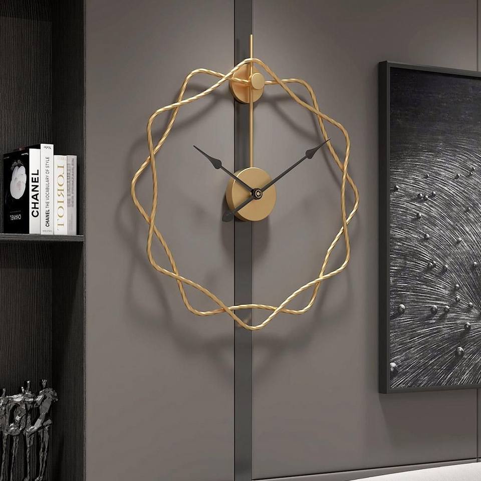 Horloge murale en chiffres romains dorés, grande horloge décorative de style vintage pour la maison, le bureau, l'intérieur luxueux