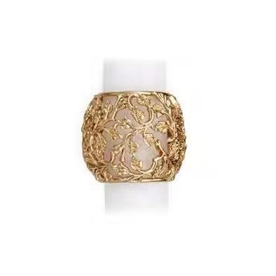 Anneau de serviette de table rond en aluminium doré, motif gaufré, écologique et durable, pour mariage et décoration de table.
