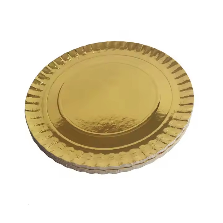 Assiettes à dessert en papier rondes et rectangulaires dorées pour fêtes