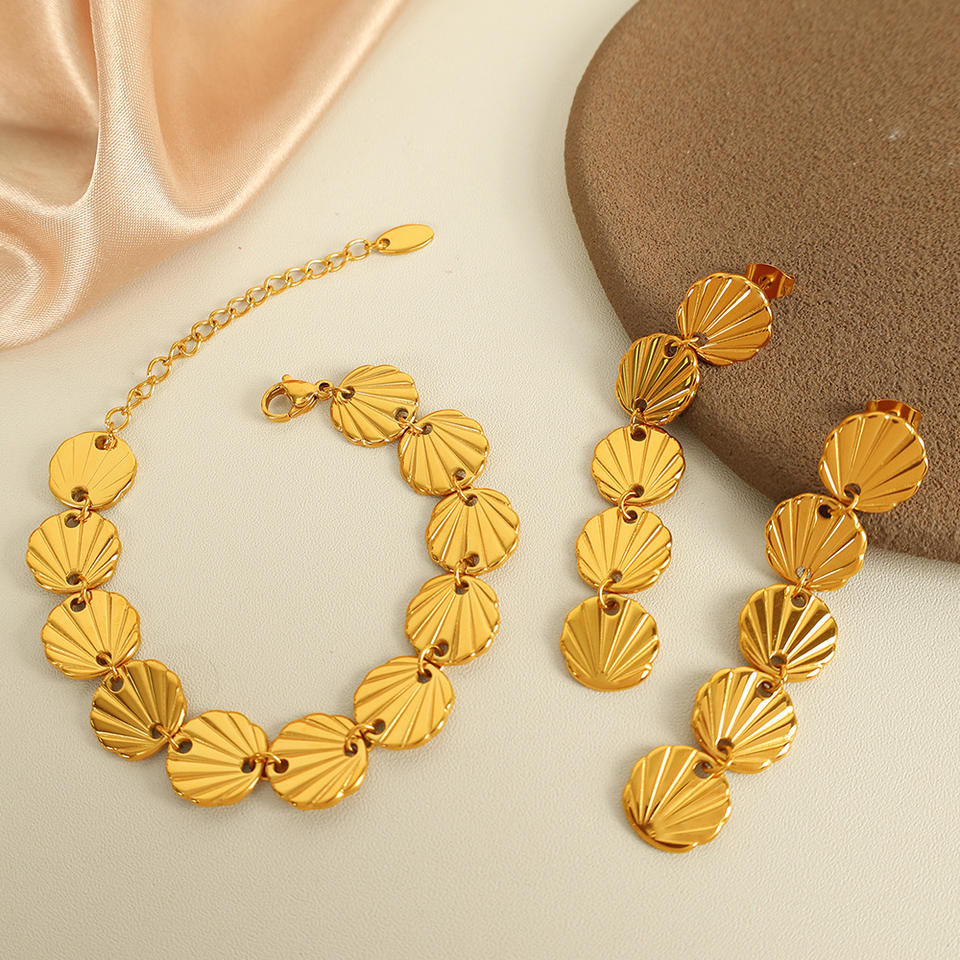 Ensemble boucles d'oreilles et bracelet en coquille dorée pour femme, bijoux fantaisie en alliage de zinc, accessoires de fête tendance
