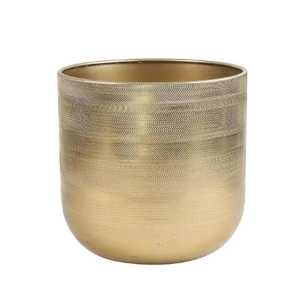 Jardinière en métal fini or brillant Design gaufré forme ronde intérieur extérieur décoratif maison balcon jardinière pour décor de jardin