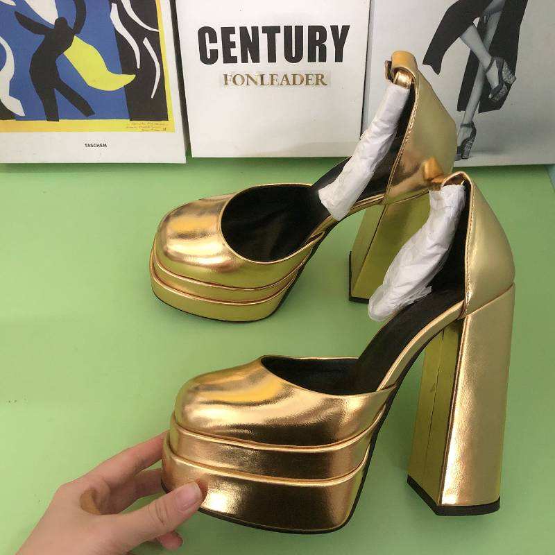 Escarpins Chunky à Plateforme Dorés/Argentés avec Strass pour Soirées et Clubs – Chaussures d'Hiver Tendance à Talons Hauts