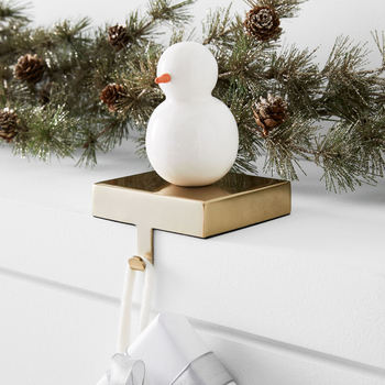 Gold Snowman Design Fancy Stocking Holder Standing Tabletop Christmas Ornaments Hanging Accessories Stylish Fun Holiday Decor