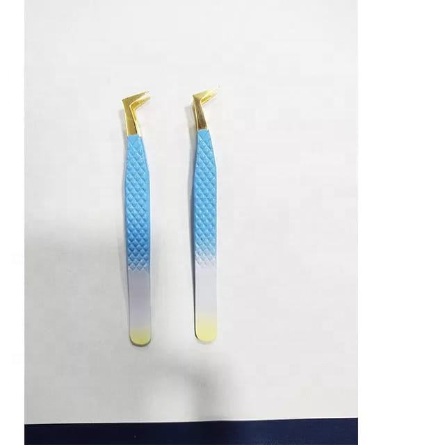 Pince à cils de couleur Ombre à pointe dorée pour extensions de cils Pince à épiler incurvée de haute qualité