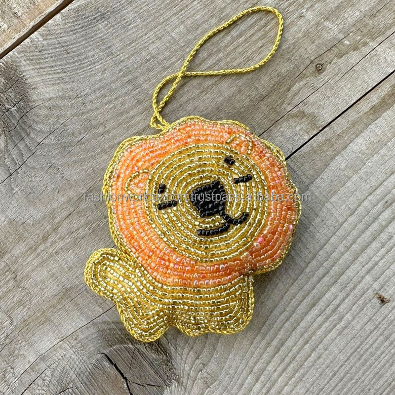 Décoration de Noël en velours doré brodé avec centre rouge et paillettes Cintre élégant pour les fêtes