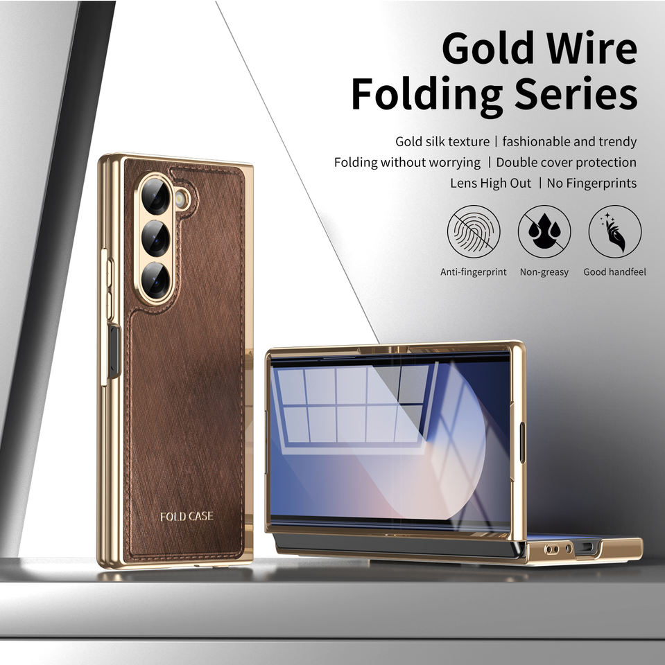 Coque de téléphone en fil d'or pour Samsung Z Fold 6 5 4 3 avec écran en film trempé électroplaqué pour Z Fold 6