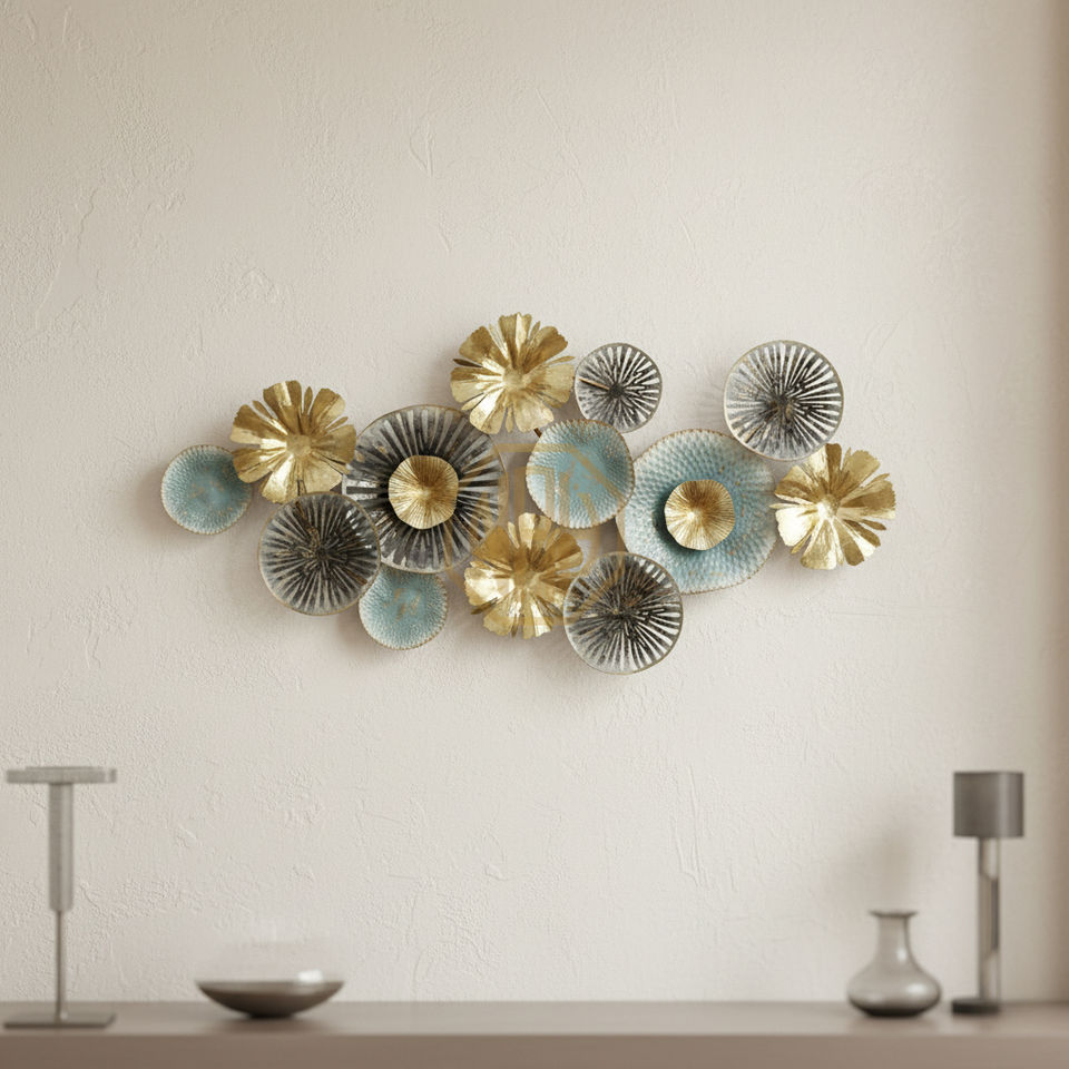 Gold Wrought Iron Flower Art Wall Decor Metal Frame Hanging for Bedroom Home Interior by Noorims