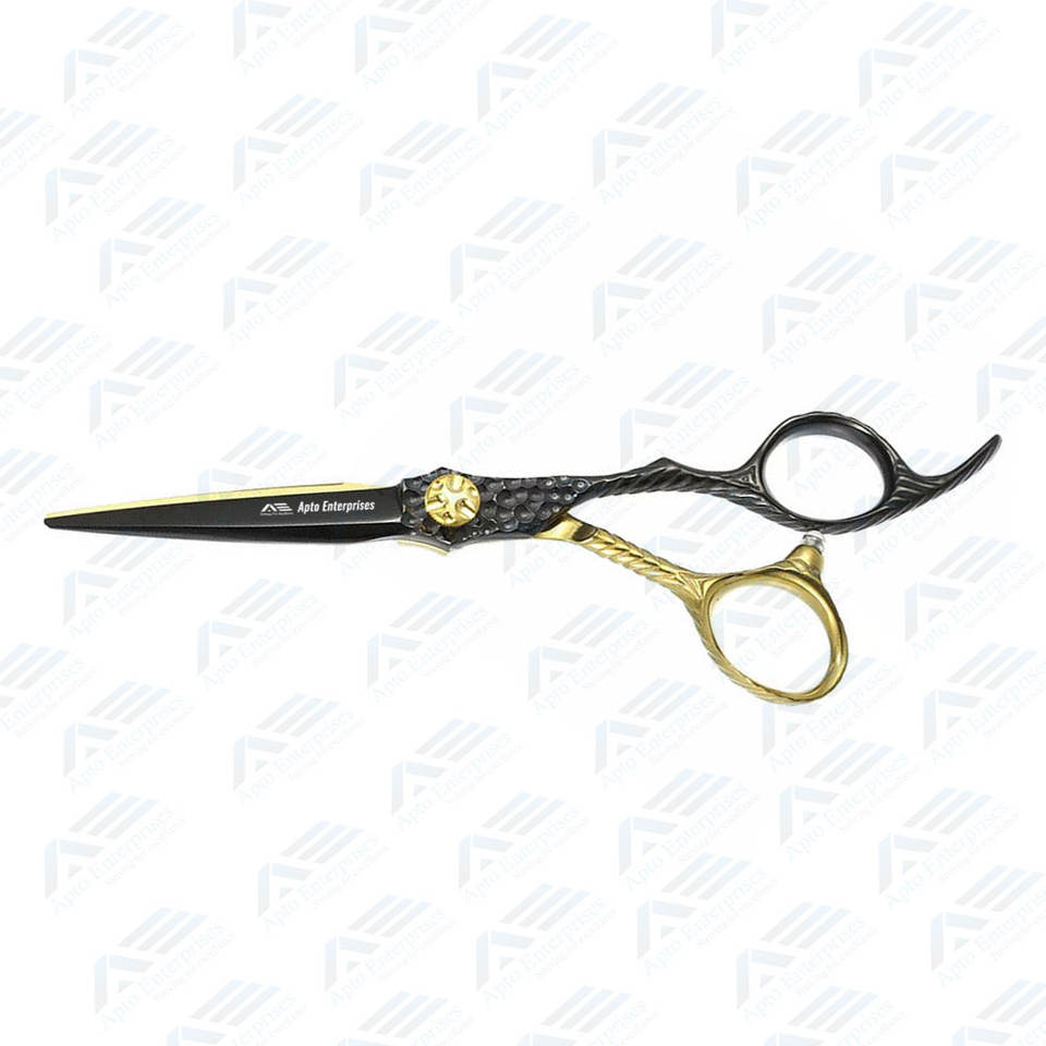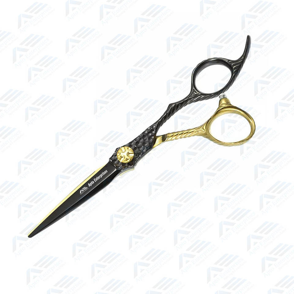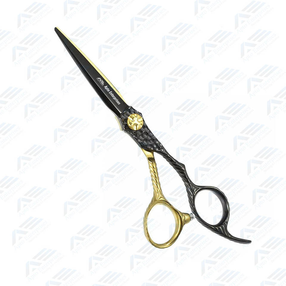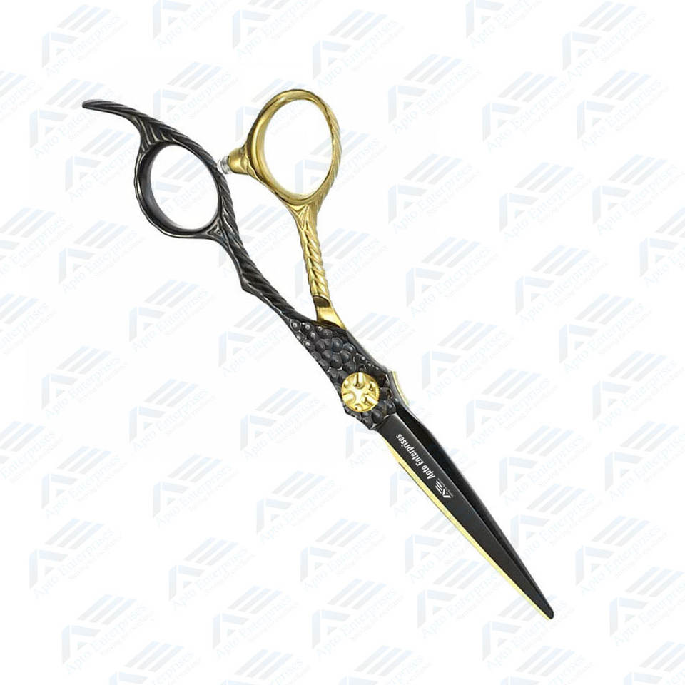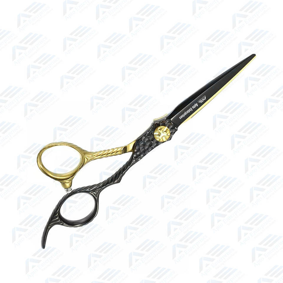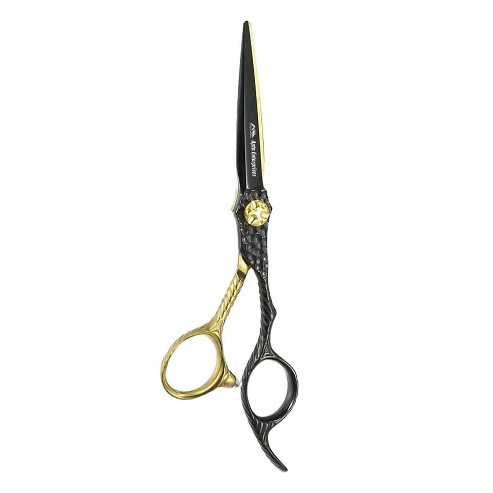 Ciseaux de coiffeur dorés et noirs à lame tranchante en acier inoxydable allemand de qualité supérieure pour salon de coiffure