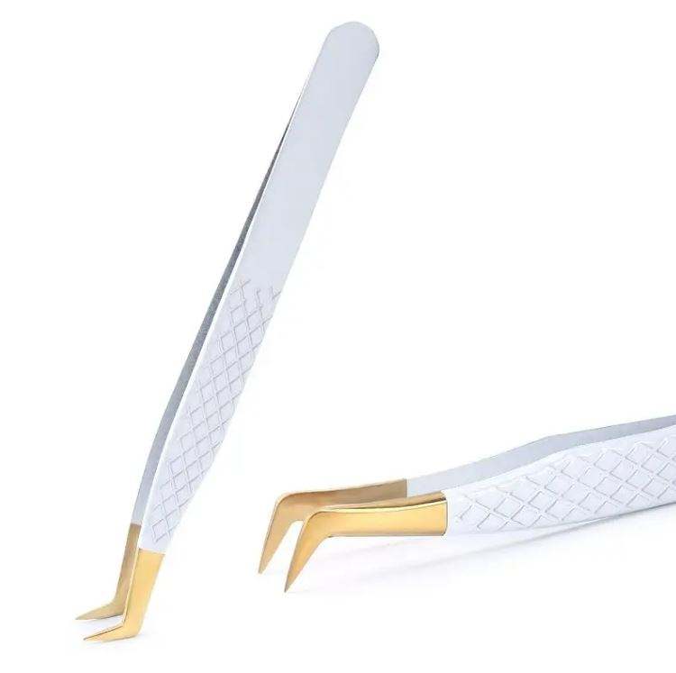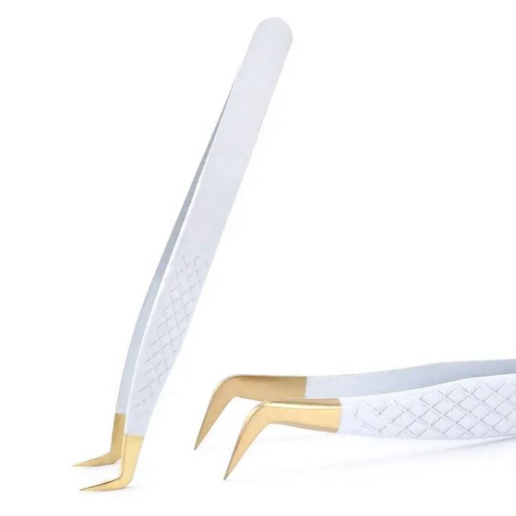 Pinces à épiler professionnelles en forme de L pour extensions de cils 3D, couleur or et blanc, outils incurvés pour les cils, pour utilisation en salon