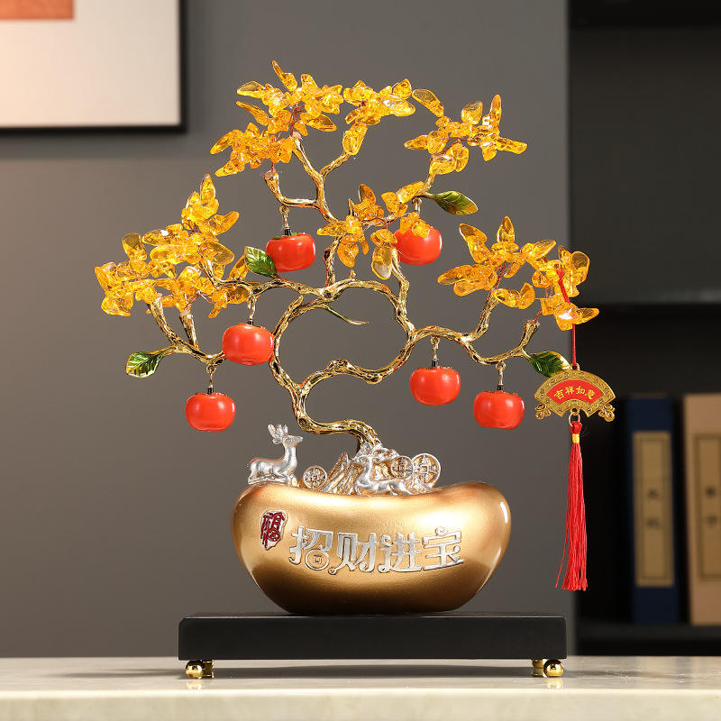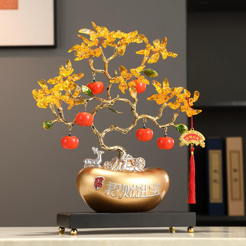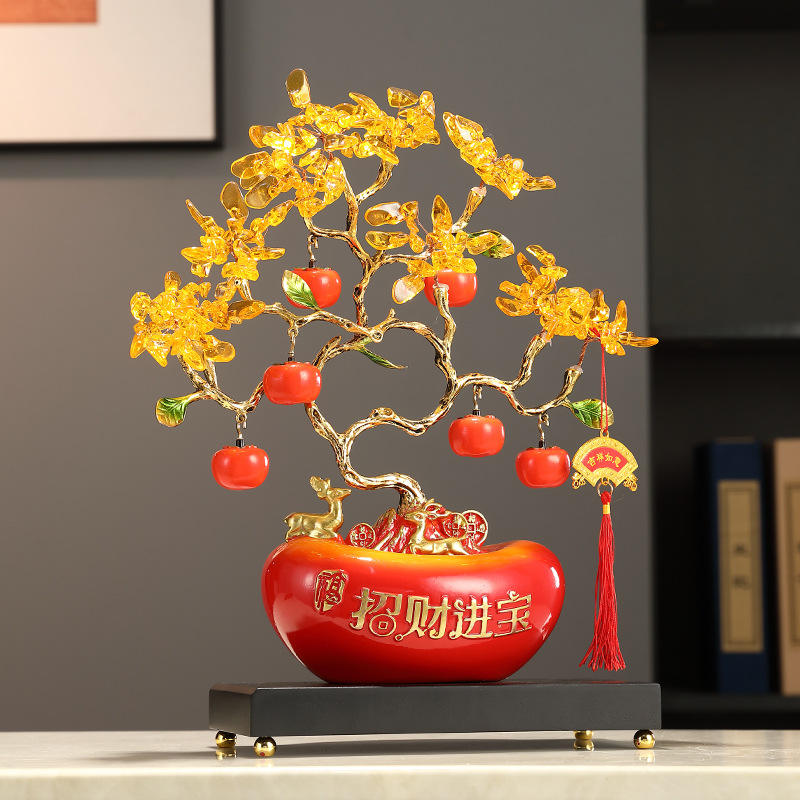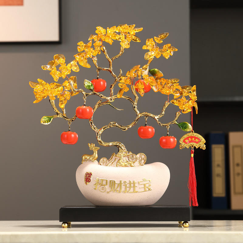 Artistic Epoxy Resin Gold Ingot Citrine Fortune Tree Cash Tree Ornament Folk Art Living Room Office Table Home Decoration