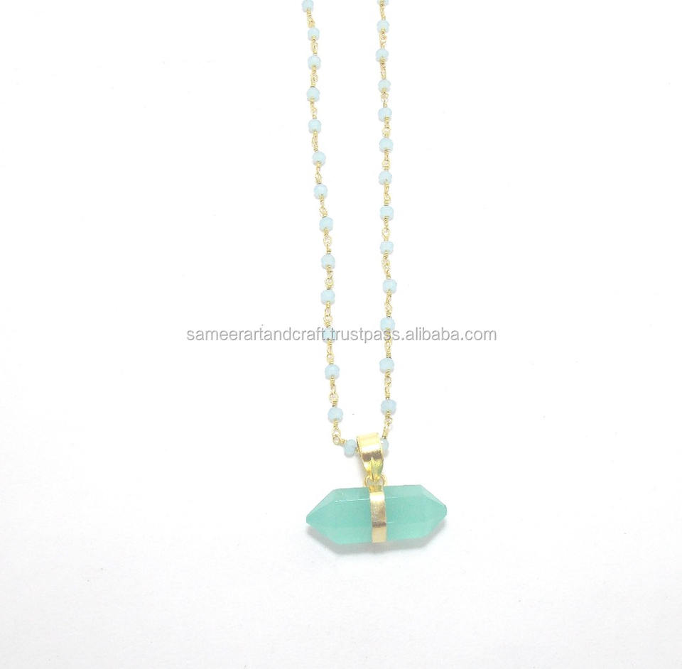 Product name:Gold plated Peru chalcedony gemstone Pencil shape pendant
