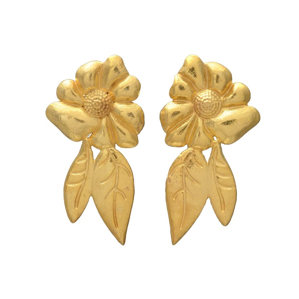 Gold plated brass earrings Enchanted Garden's Golden Bloom: Delicate Floral Charms for Your Ears