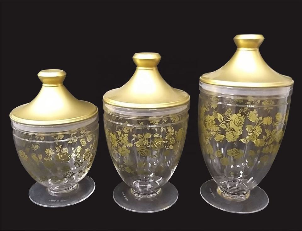 Boîte de rangement vintage écologique en acrylique doré avec couvercle hermétique Capacité de 1 à 2 litres