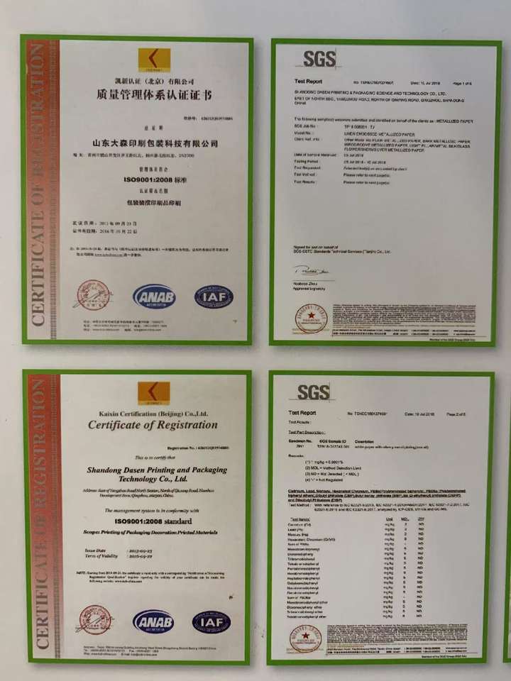 Carton métallisé sous vide de haute qualité, jetable, imperméable, résistant à la graisse, recyclable, doré et argenté, pour l'emballage des cigarettes