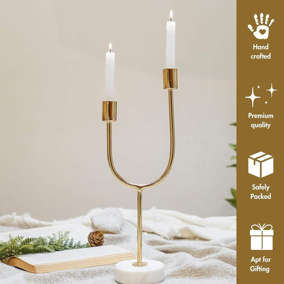 Bougeoir double en fer de qualité supérieure fabriqué à la main Golden Arc pour Pâques Noël Mariages Décoration intérieure et activités religieuses