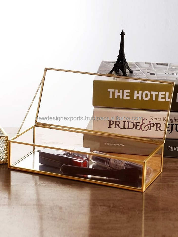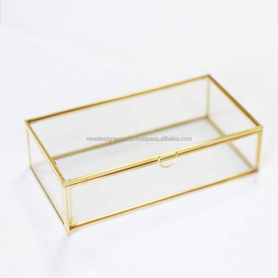 Boîte à couvercle en verre en laiton doré Boîte de présentation de bijoux décorative en laiton clair 8x4x2 pouces