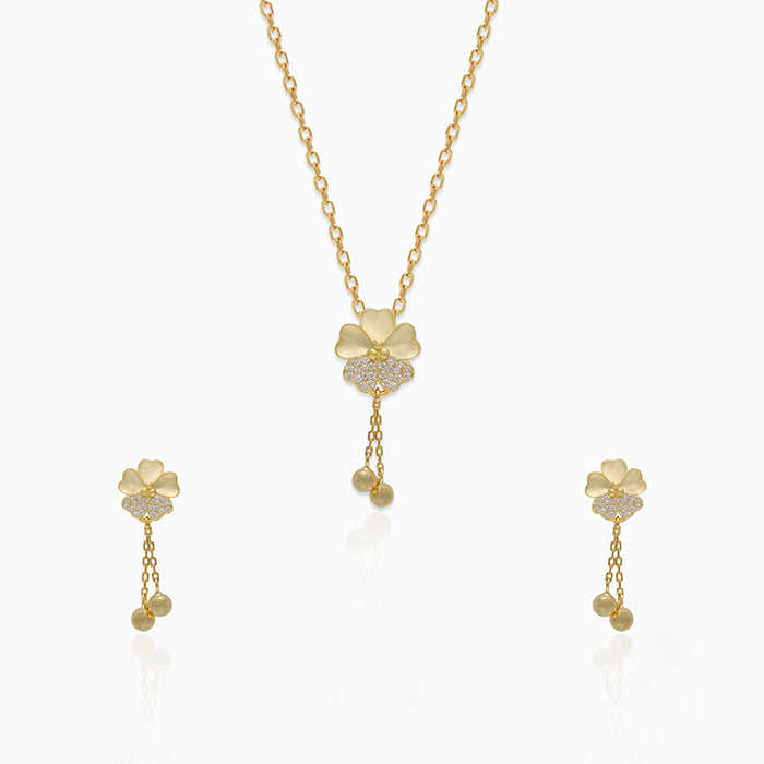 Ensemble de bijoux raffinés Golden Clover, pendentif avec chaîne à maillons