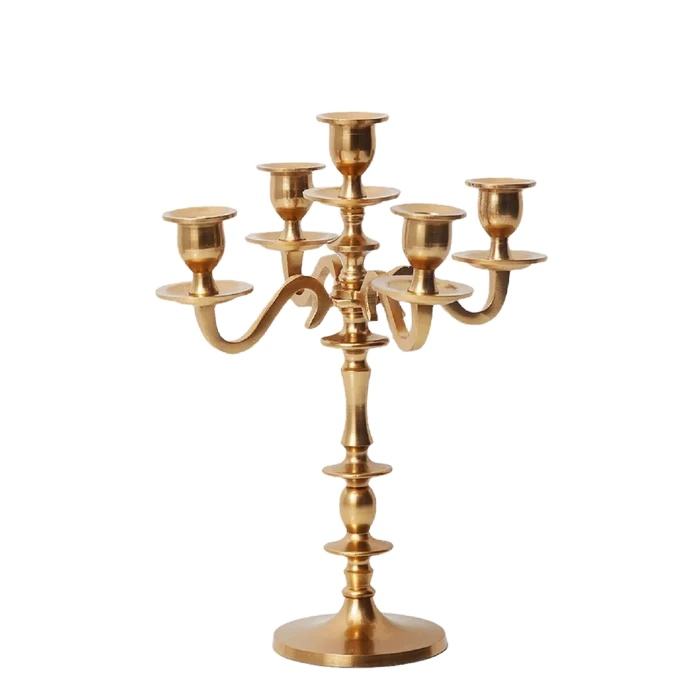 Candélabre à 5 bras de couleur dorée fabriqué à la main en aluminium Candélabre de sol sur pied Centres de table pour mariage et décoration intérieure