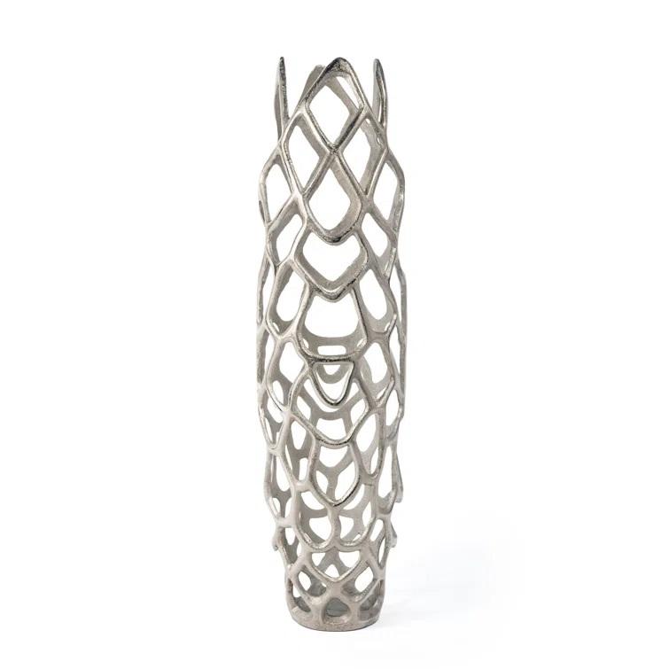 Vase en verre à cadre en métal de couleur dorée avec couleur et tailles personnalisées pour la décoration de mariage à la maison avec des tailles de 26X9X9 cm