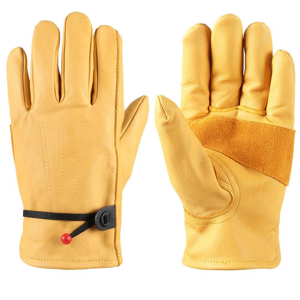 Gants de travail et de conduite, en cuir de vache doré, élastiques, pour conducteur, avec oreilles froncées au pouce