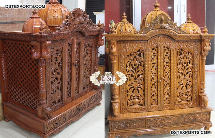 Mandir en bois doré de conception traditionnelle pour la maison, aspect antique, en teck, temple personnalisé, Australie, États-Unis