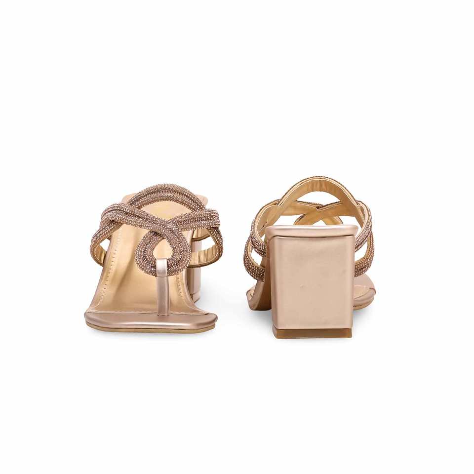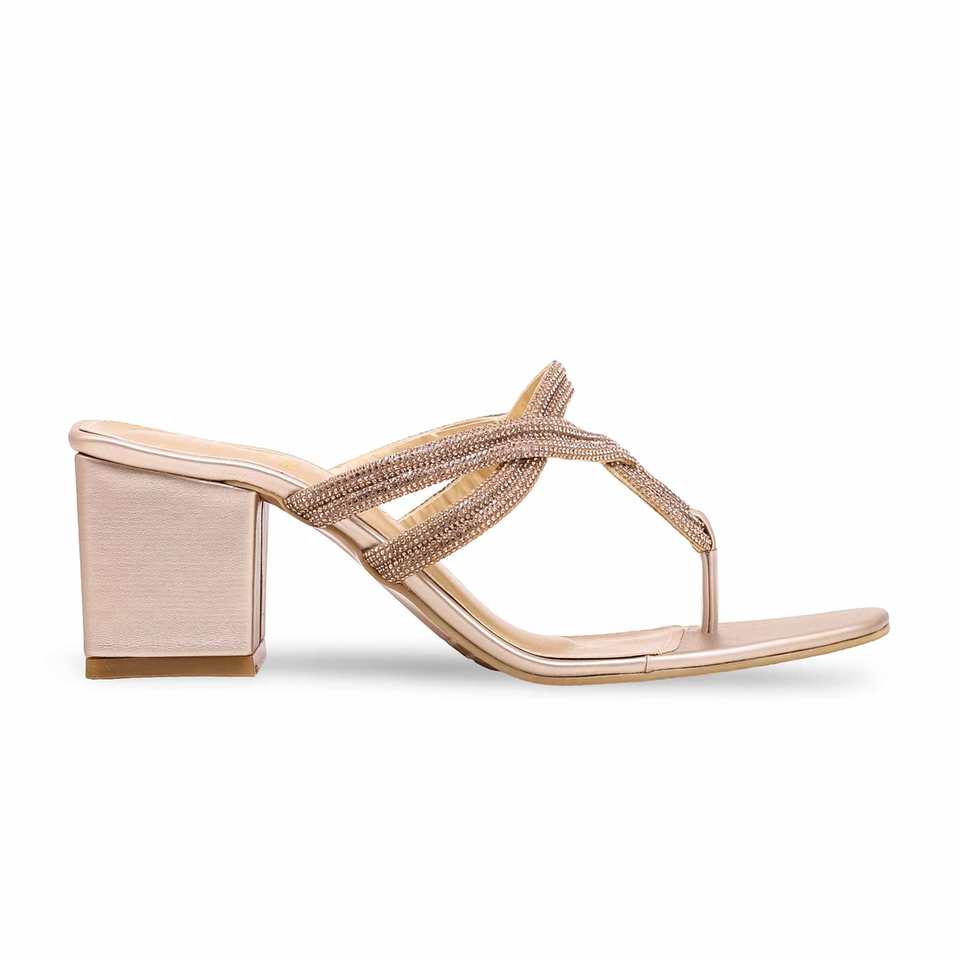 Golden FN0732 Heeled Sandals Elegant and Fancy Chappal