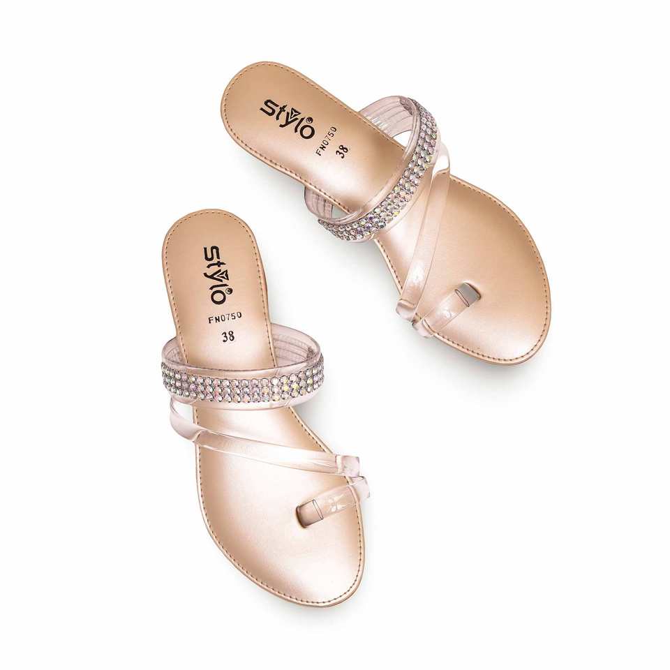 Golden FN0750 Heeled Sandals Elegant and Fancy Chappal