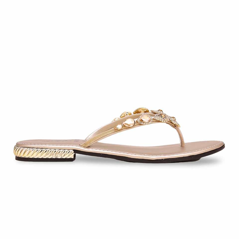 Golden FN0753 Heeled Sandals Elegant and Fancy Chappal
